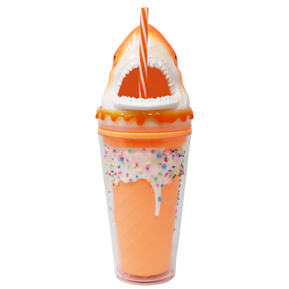 Dive into a sea of adventure with this Limited Edition Fin-tastic! Shark Drinking Cup —It captures the excitement of the ocean with a jaw-dropping shark that's ready to "chomp" down on every sip. Ideal for kids and adults alike it comes with a matching candy stripe straw, and is available in 3 different colours Neon Orange, Neon Pink, Neon Blue. Lightweight yet durable, this cup is perfect for smoothies, juices, or fun drinks on the go. Whether for pool side, summer vacations, playdates, parties, or everyday adventures, this Shark Drinking Cup adds a splash of adventure to any drink.Features:3D Shark design Includes reusable straw – drink fun on the go! Keeps drinks cool (Recommended: 0–60°C)BPA-free, food-grade PS double-layer plastic. Hand wash only; not microwave or dishwasher safe.