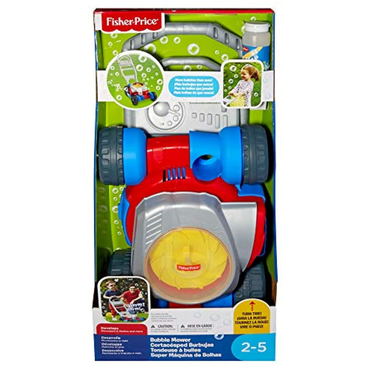 Your little helper will love playing with this Fisher-Price Bubble Mower. This super fun bubble mower looks and sounds just like a real lawnmower. Roll the bubble mower to watch the motor spin as tons of bubbles are created.