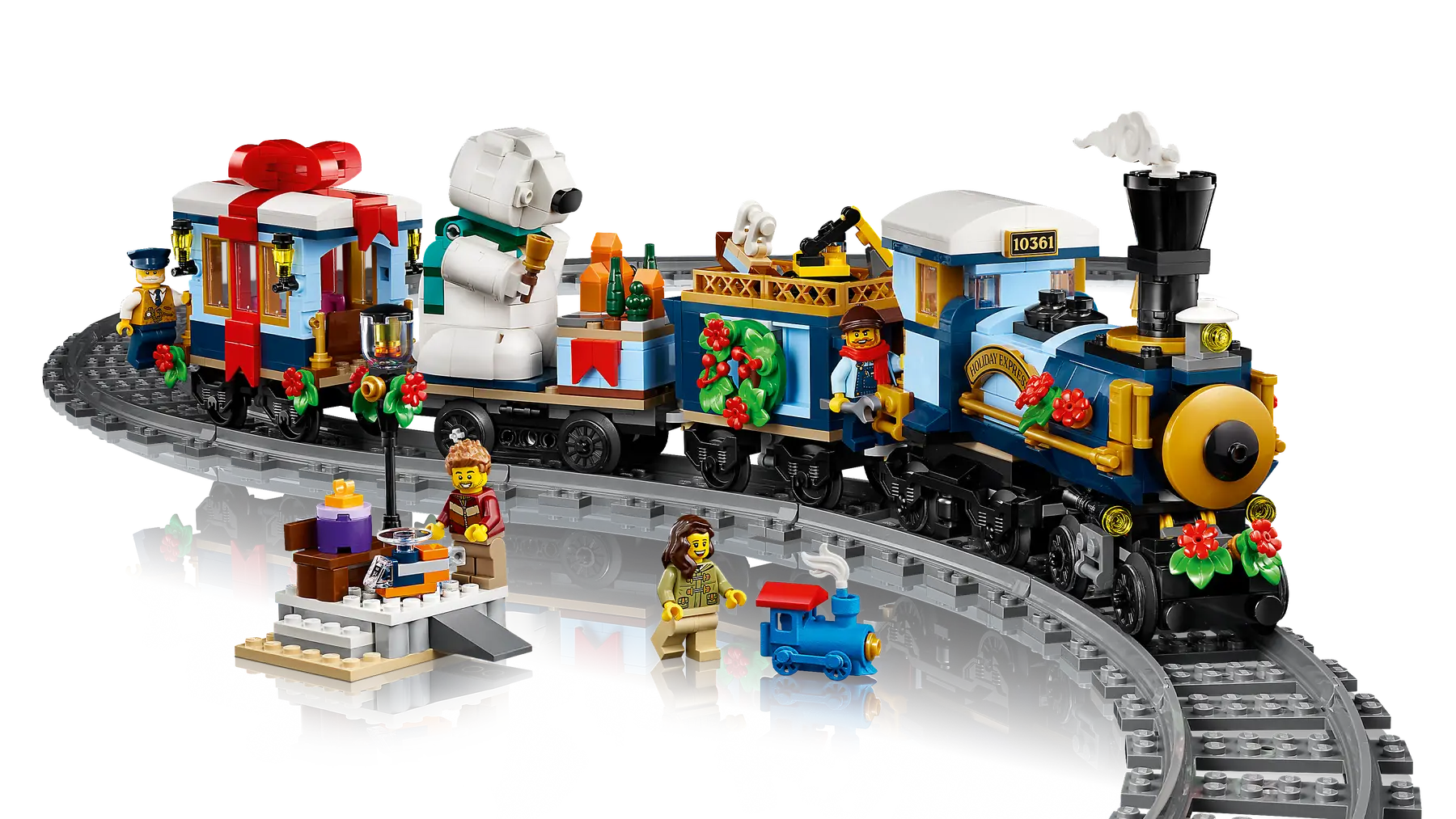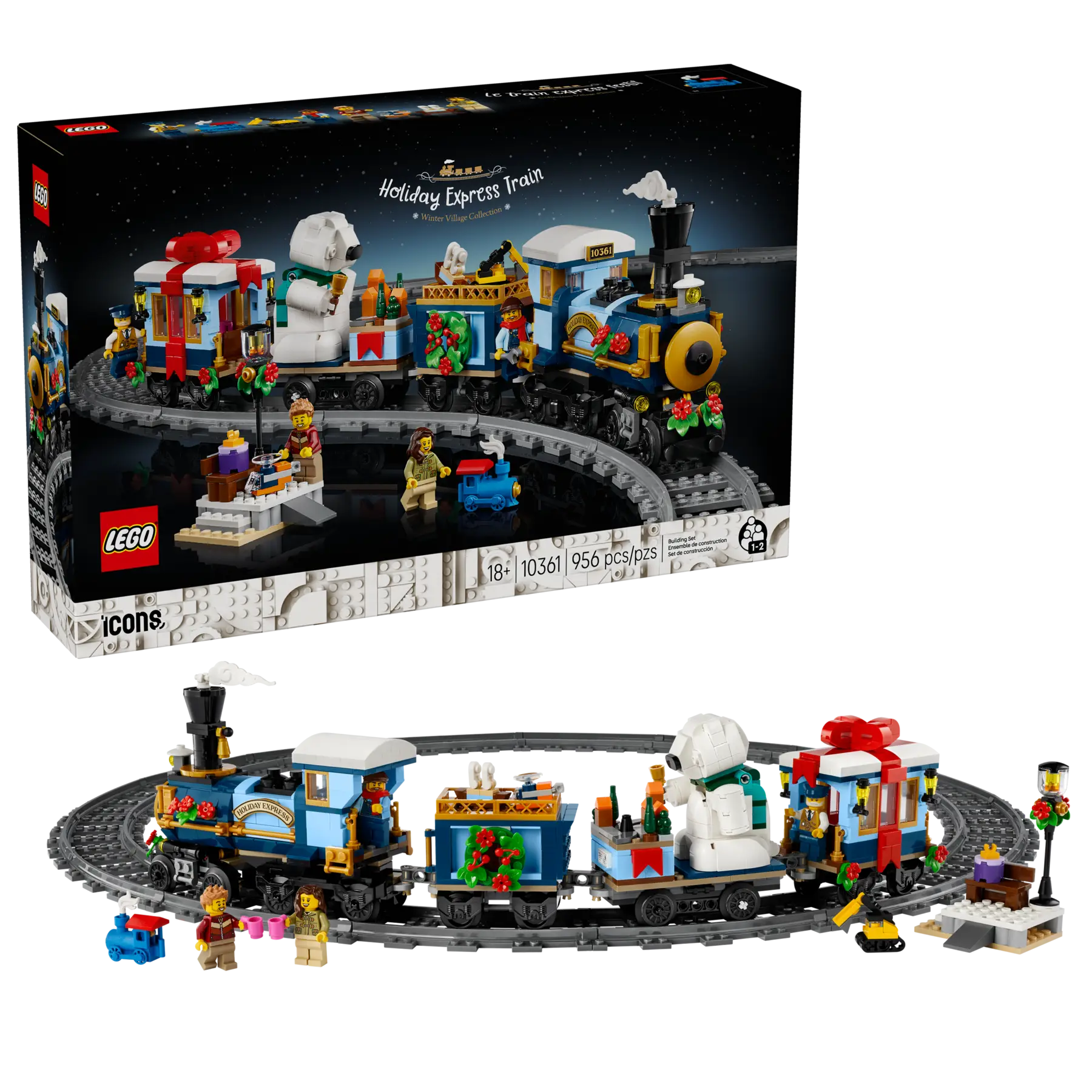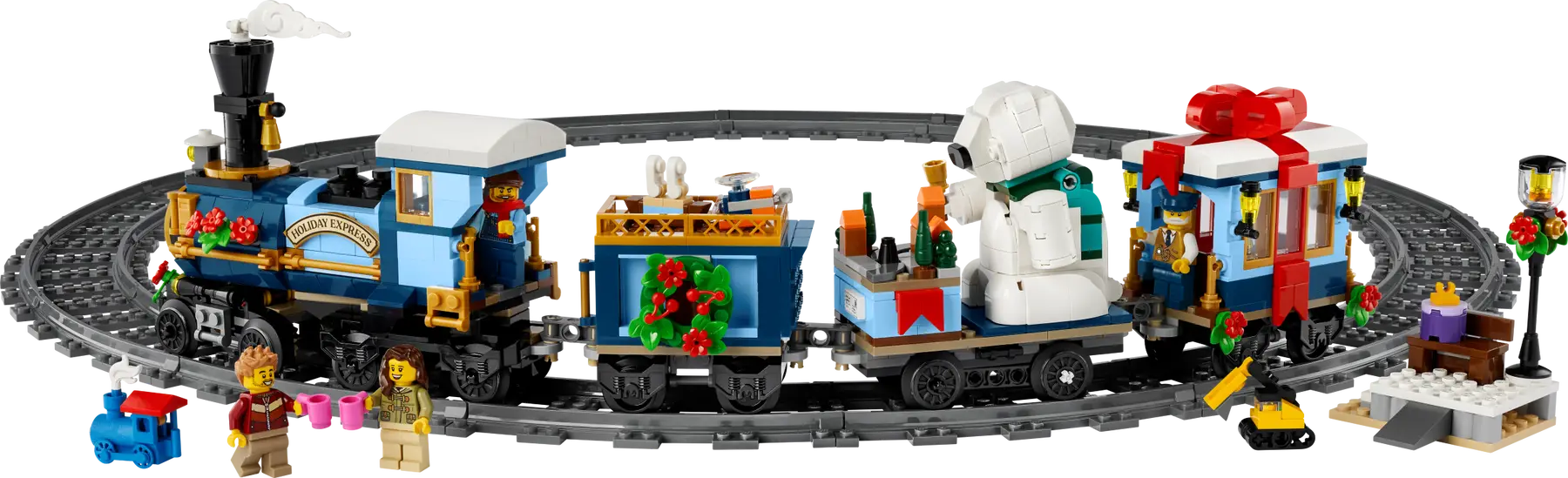 The LEGO® Icons Holiday Express Train (10361) model train set has arrived. Craft a locomotive with a bobbing chimney, coal tender, flat wagon carrying a bell-ringing polar bear and an end carriage with a furnished interior. This adult building kit also includes 4 minifigures and a passenger platform with a bench and lamppost, plus miniature toys including, for the first time in a retail LEGO set, a 3D-printed train piece. Build the track around your Christmas tree and add the LEGO Powered Up kit (sold separately) to motorise the locomotive.