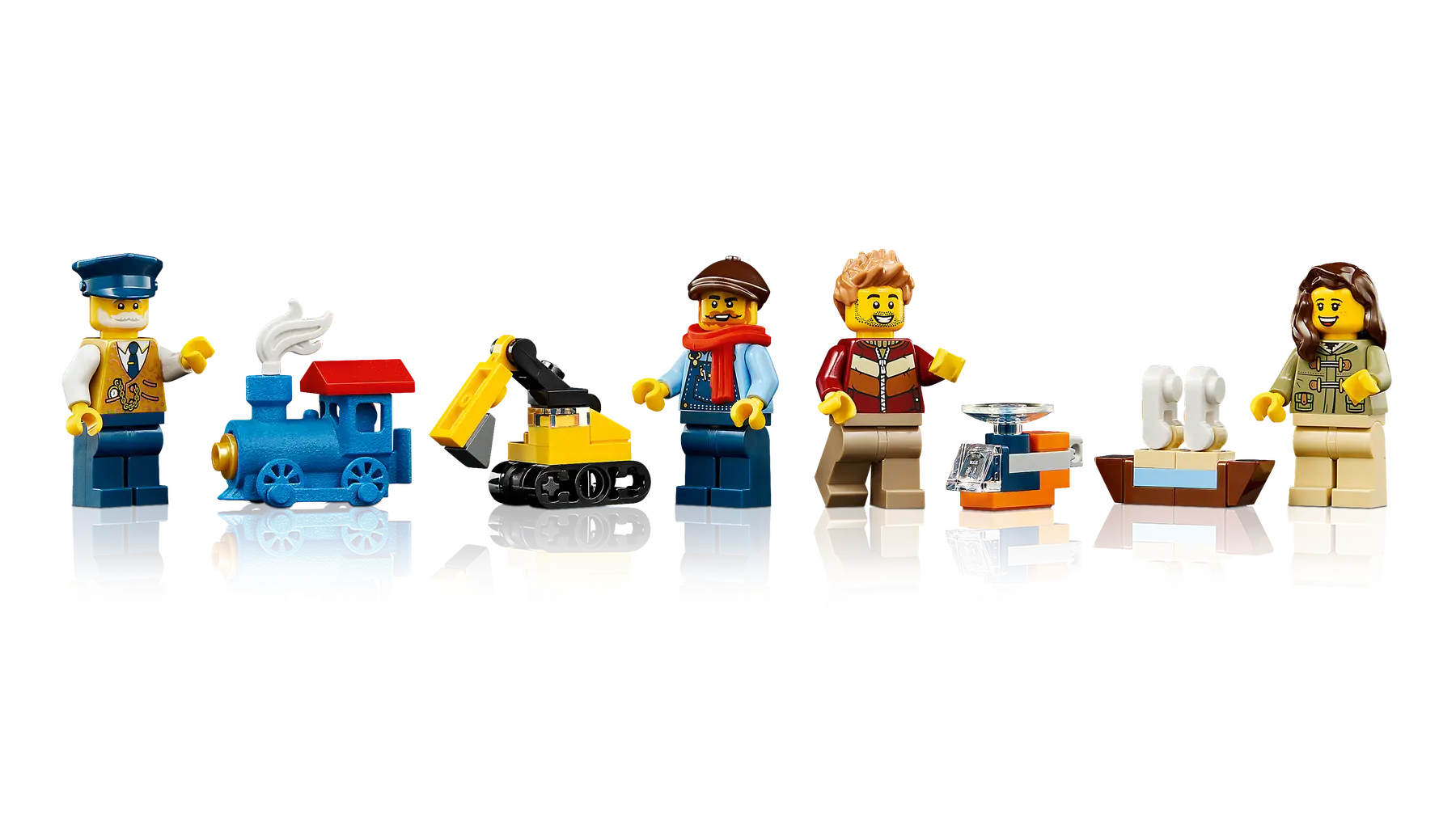 • What’s in the box – This LEGO® train set includes a locomotive, coal tender, flat wagon, end carriage, platform, a 16-piece circular track, miniature toys including a 3D-printed train piece and 4 minifigures