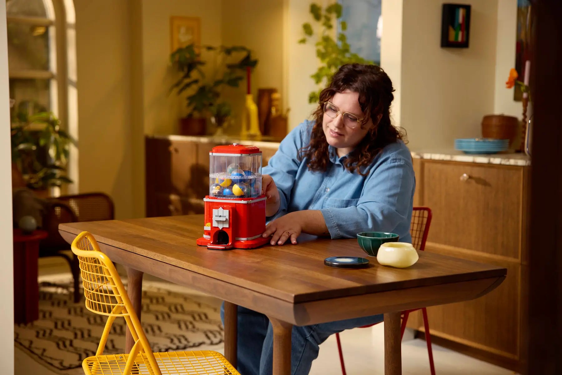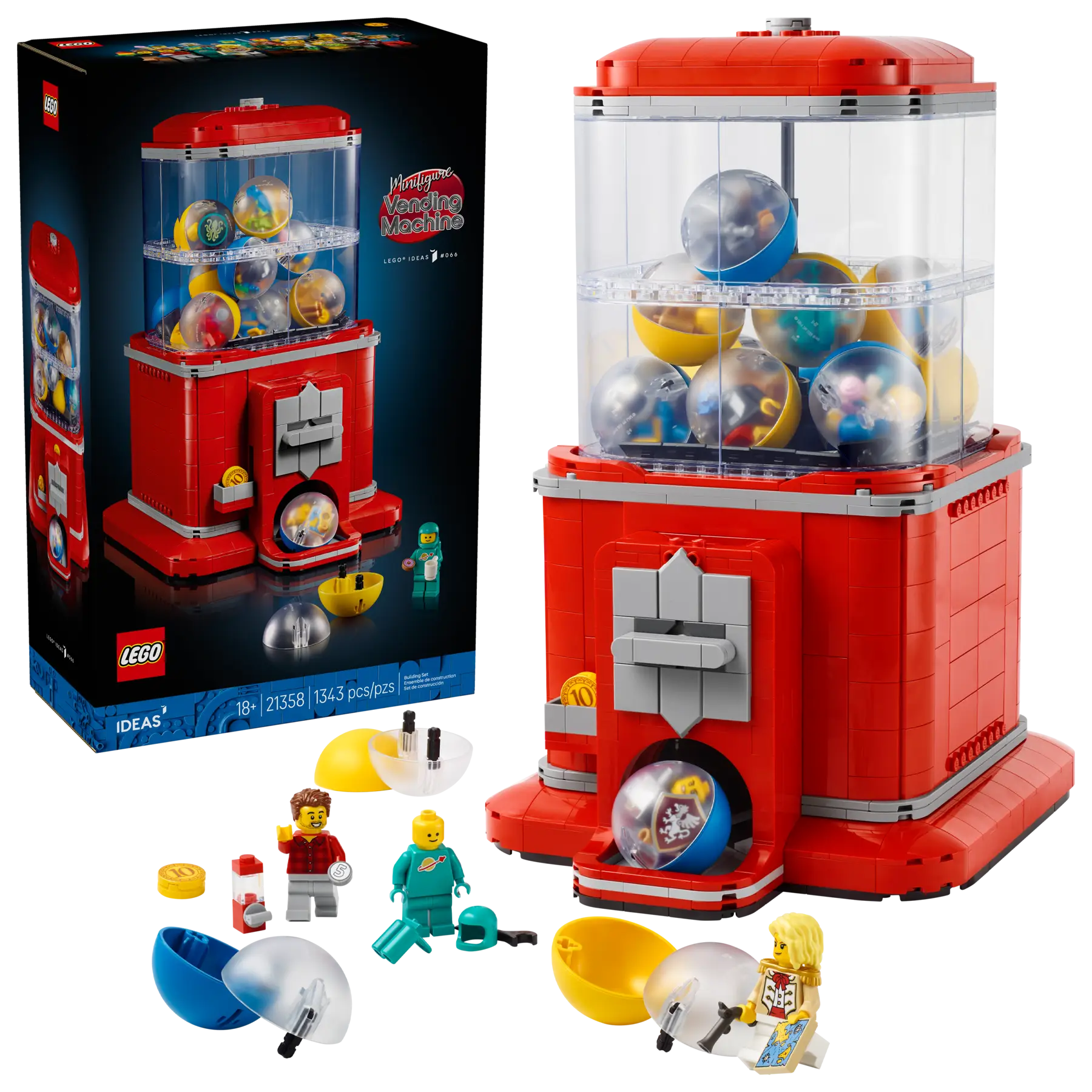 Hark back to simpler times and create vintage-style decor with this Minifigure Vending Machine building kit for adults (21358). A top creative gift for men, women and lovers of retro art and design, this LEGO® Ideas set challenges you to recreate the look and functionality of a classic vending machine. Build and display your creation, insert a LEGO coin element in the slot and turn the handle to release 1 of 16 capsules – the handle clicks when turned, just like the real thing.
