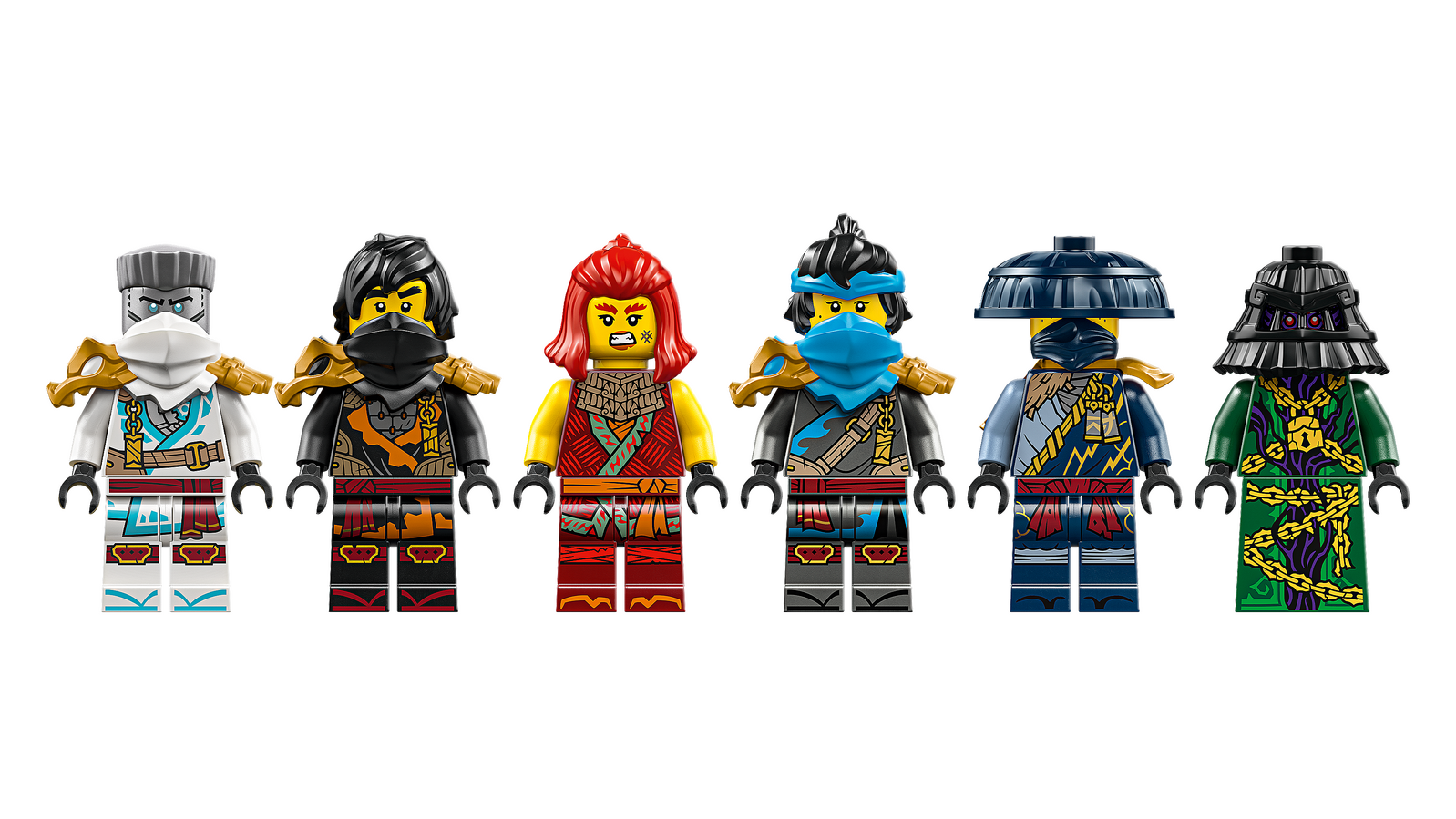 This interactive adventure playset includes everything ninja fans need to recreate stories from season 3 of the NINJAGO Dragons RisingTV show: a gear to open and close the sails, removable roofs and floors to gain access to the ship’s interior, which includes a sushi bar and a table in the main cabin that can be folded up to reveal a secret computer.