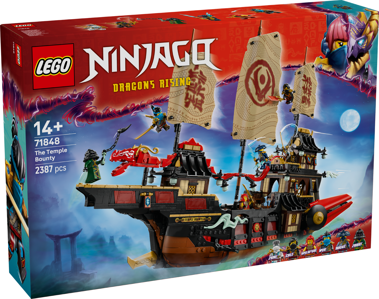 Older NINJAGO® fans aged 14 and up will be thrilled to add The Temple Bounty (71848) ship toy to their collection of LEGO® NINJAGO models. The large and highly detailed boat model is the latest in a line of famous NINJAGO ships and is packed with cool features and functions. It also comes with a display stand so fans can show it off on a shelf or bedside table.