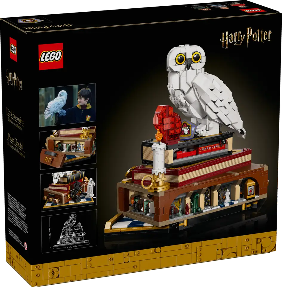 Build nostalgia for Harry Potter and the Philosopher’s Stone™ with the LEGO® Harry Potter™ 25th anniversary Philosopher’s Stone – Collectors’ Edition (76466). A top creative gift for adult Harry Potter fans, this collectible building set has fun functions, iconic characters and objects, plus microscale versions of classic scenes to inspire magical memories. Create the first LEGO Hedwig™ snowy owl figure with closed wings and display her next to the Philosopher’s Stone on top of Harry Potter’s trunk. Add 3 LEGO Harry Potter minifigures – Harry Potter, Hermione Granger™ and ™ Ron Weasley™ – and items including a Chocolate Frog card and a Wizard Chessboard. Turn the 3 dials to turn Hedwig’s head, move the Queen on the Wizard Chessboard and blow the side off Harry Potter’s trunk to reveal the mountain troll’s bathroom attack scene. The other microscale scenes depict the Hogwarts™ Express and the 5 trials Harry faces to reach the Philosopher’s Stone. Set contains 1,571 pieces.