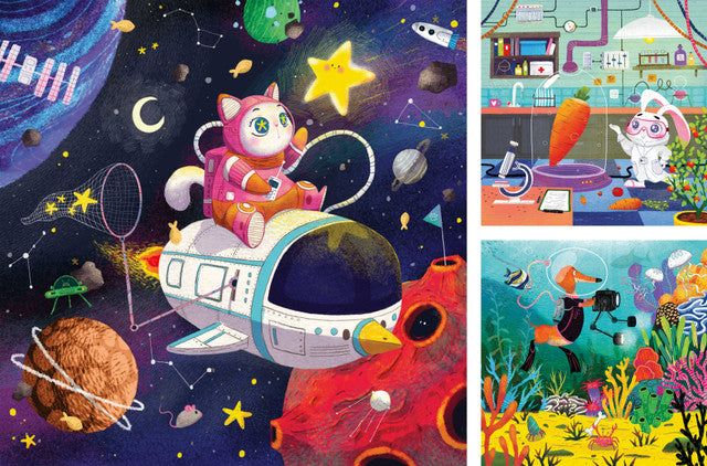 Each puzzle has 49 pieces, designed to challenge and delight kids aged 5 and up with the Animal Explorers theme