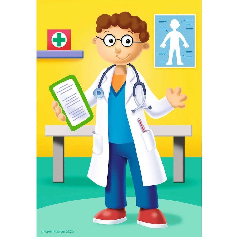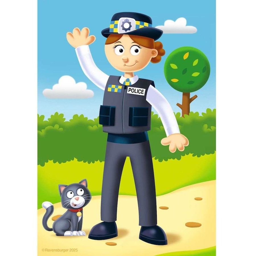 This 4 in a box jigsaw puzzle is an engaging and educational puzzle that challenges your child to identify the people in the puzzle, and what profession they belong to. Can you identify their profession based on their uniform and equiptment related to their jobs? Ravensburger 4 in a box kids puzzles are crafted with premium quality materials. Each puzzle measures 19 x 14cm when complete. Ages 18mo +